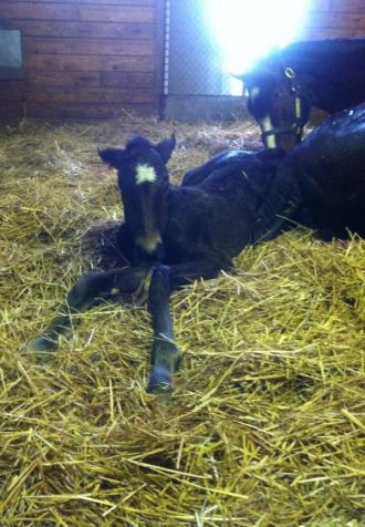 The colt is emblazoned with a white star and is said to resemble his mother.